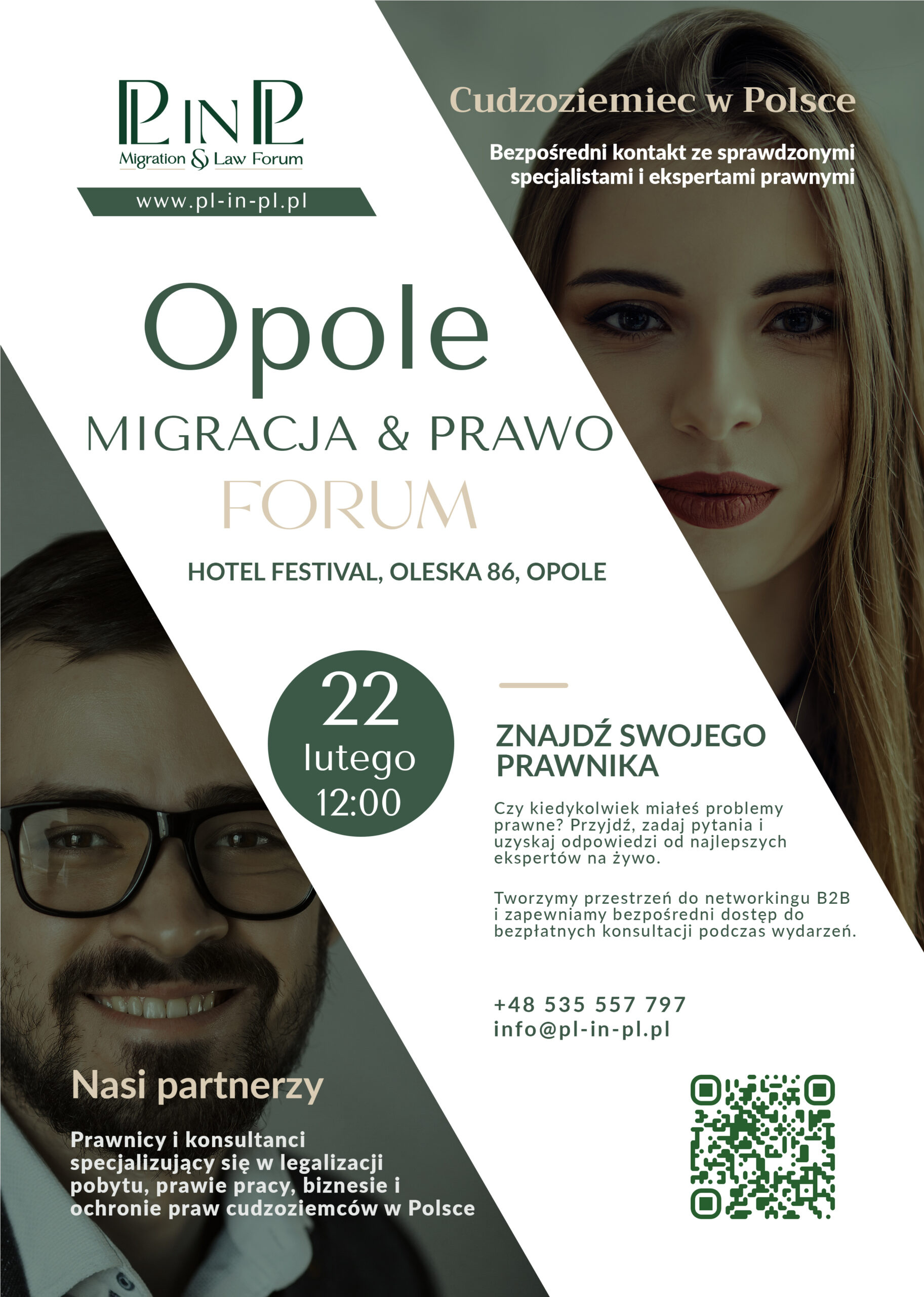 Migration & Law Forum to wyjątkowe wydarzenie, które odbędzie się 22 lutego 2026 roku w Opolu, Hotel Festival, ul. Oleska 86 o godz. 12:00. Naszym głównym celem jest stworzenie platformy wsparcia dla cudzoziemców mieszkających i pracujących w Polsce, pomagając im w adaptacji do polskiego systemu prawnego i administracyjnego.